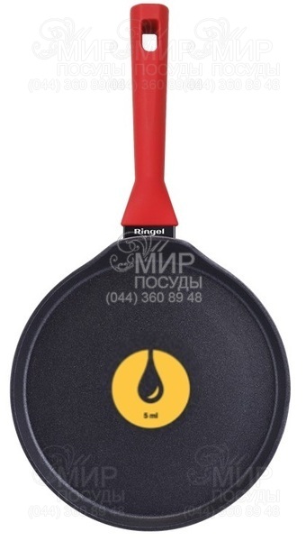 Серия сковородок Pepperoni от Ringel – это отличный вариант как для приготовления блюд из соусов, самих соусов и тушения, благодаря высоким бортикам, так и прекрасной посуде для разогрева. Изготовленные из высококачественного кованого алюминия, данные сковороды являются крепкой посудой с быстрым и равномерным нагреванием. Дно сковородок этой серии имеет дополнительное утолщение до 4 мм по сравнению со стенками 3 мм. В данной серии используется сверхустойчивое трехслойное антипригарное покрытие, позволяющее использовать меньше масла при приготовлении. В каждую сковороду интегрирована первая в мире система дозировки масла. Наименьшее деление системы соответствует 5 мл масла, а большее – 10 мл масла. С помощью этой системы вы сможете легко и быстро приготовить здоровые и вкусные блюда с использованием минимума жира и с максимальным сохранением полезных веществ в блюде. Дополнительное покрытие soft-touch, кроме тактильного удовольствия, защищает руки от ожогов и позволяет не ускользать даже из влажных ладоней. Специальный стальной индукционный диск в данной части сковороды дает возможность его использования на всех видах плит, включая индукционные, инфракрасные и стеклокерамические.