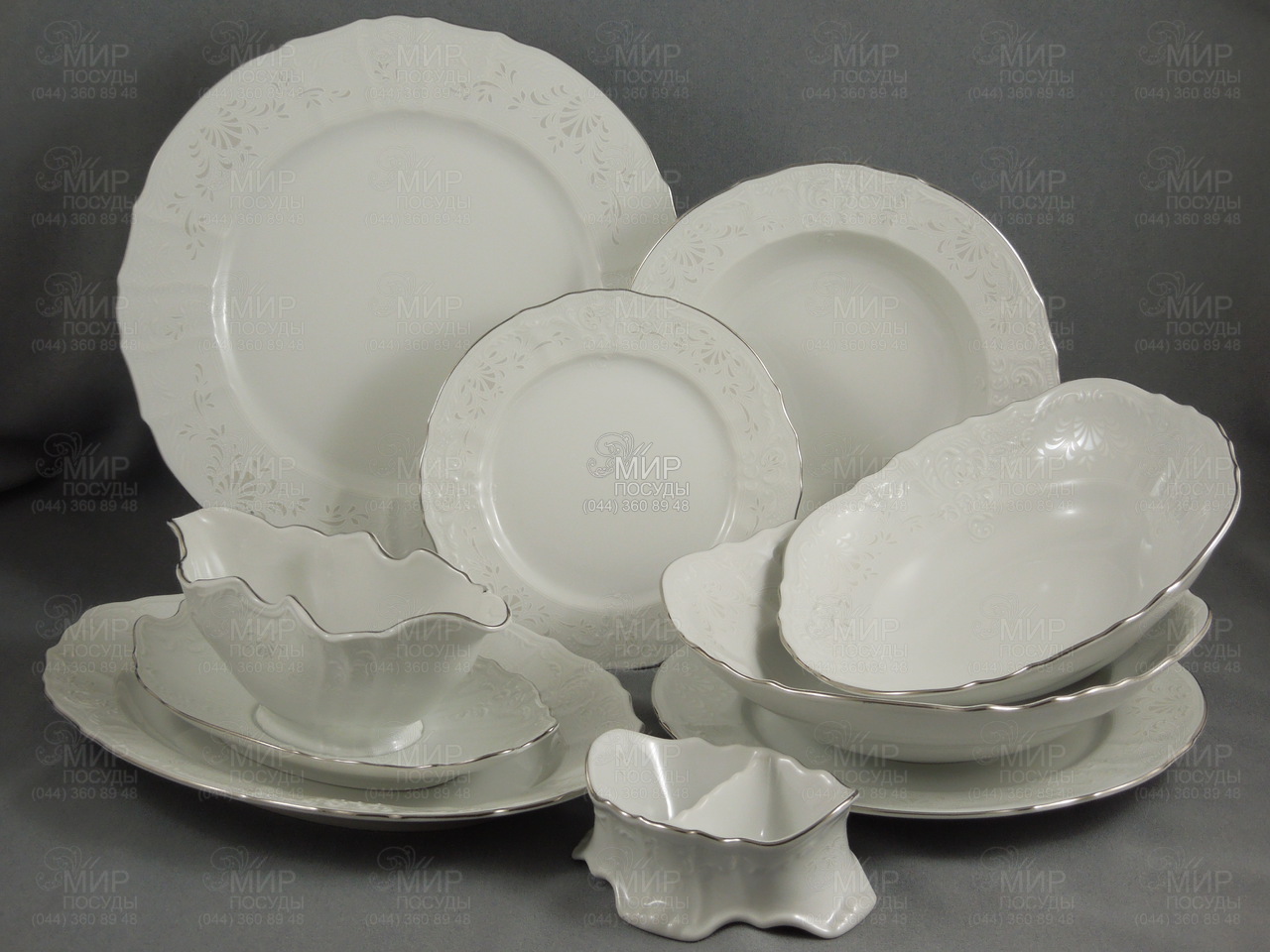 Мир посуды - Столовая посуда - Столовые сервизы - Столовый сервиз Bernadotte "Деколь, отводка платина" 6/24