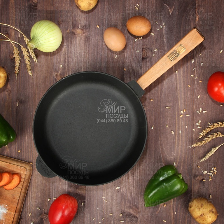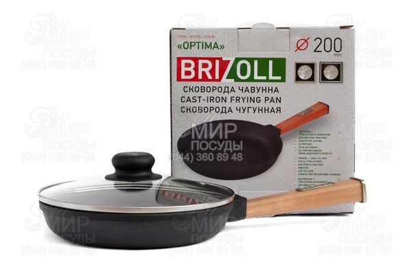 Чугунная сковорода украинского производства от компании Brizoll - прекрасный выбор для любой хозяйки. Как известно, такая посуда чрезвычайно прочна, не боится перегрева, допускает использование металлических лопаток и ножей, а потому служит многие годы. Чугун является экологически чистым материалом, и посуда из него абсолютно безопасна для здоровья. Высокая теплопроводность обеспечивает быстрый нагрев посуды и длительное сохранение тепла, благодаря чему Вы экономите на энергоносителях. Так же чугунная посуда подходит для любых типов плит, включая индукционные. Посуда серии Оптима - наиболее популярная благодаря идеальному сочетанию фирменного стиля и цены. Сковороды данной серии оснащены деревянными ручками, прочно прикрепленными к корпусу посуды. Шлифованная поверхность приятна на ощупь. Ручка не нагревается, снабжена пластинкой с логотипом компании. При необходимости допускается мыть в посудомоечной машине.