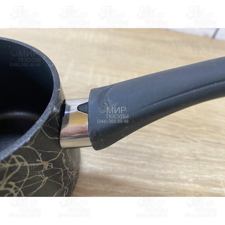 Турка серии Black Mars от украинского бренда Ardesto изготовлена из алюминия. Оснащена антипригарным гранитным покрытием и бакелитовой ручкой. Нельзя мыть в посудомоечной машине.