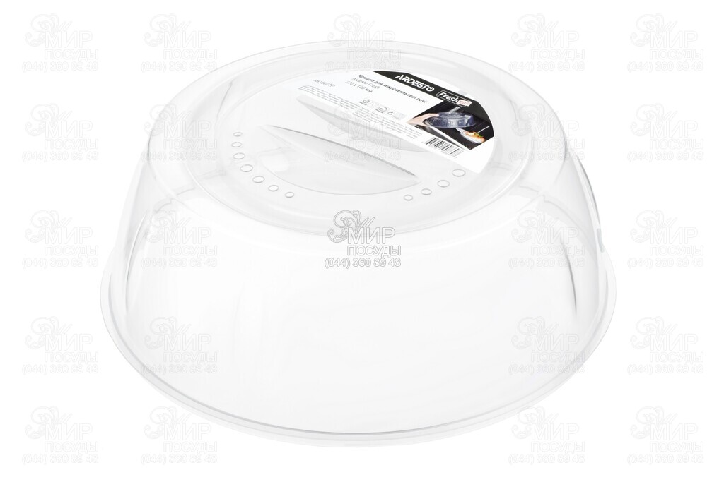 Прозрачная пластиковая крышка для микроволновки от Ardesto. Для удобства предусмотрена ручка, а специальные отверстия обеспечивают правильное распределение температуры при разогреве или приготовлении пищи.