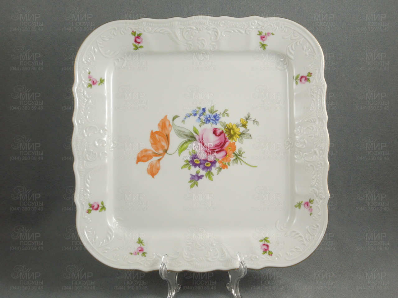 Мир посуды - Кухонная посуда - Подносы и столики - Подносы - Поднос квадратный Bernadotte Мейсенский букет 26см