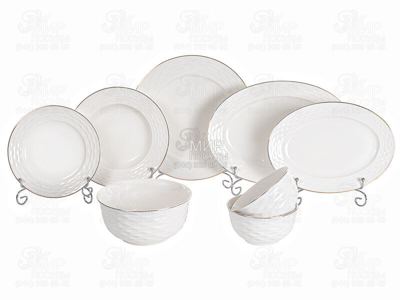 Сервиз столовый от Lefard China изготовлен из фарфора. Дизайн отличается изящной простотой формы с золотой каемкой. Эта посуда предназначена для сервировок, в которых аристократическая изысканность гармонирует с уютным домашним колоритом.