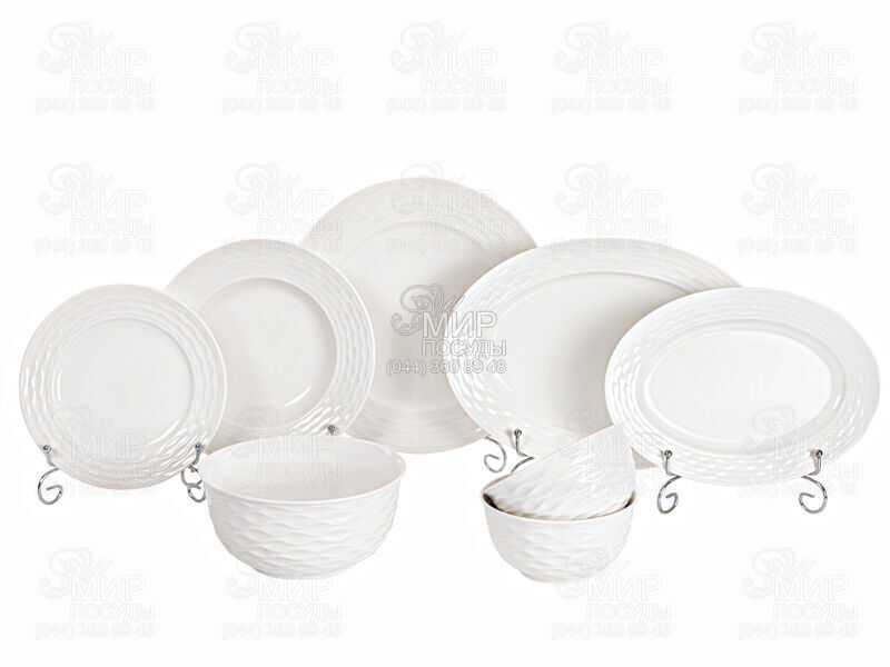 Сервиз столовый от Lefard China изготовлен из фарфора. Дизайн отличается изящной простотой формы с тиснением. Эта посуда предназначена для сервировок, в которых аристократическая изысканность гармонирует с уютным домашним колоритом.