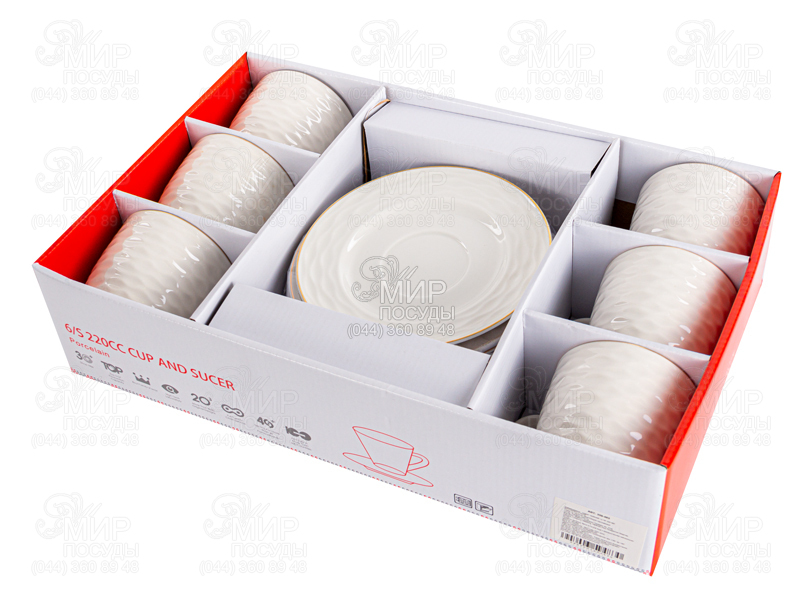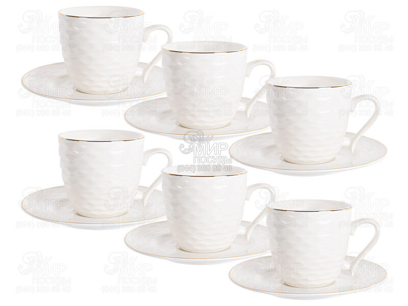Мир посуды - Столовая посуда - Чашки - Наборы чайных чашек - Набор чашек для чая с блюдцами Золотая волна 220мл 359-483