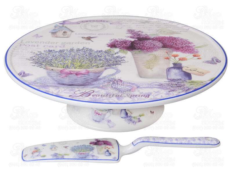 Мир посуды - Столовая посуда - Тортовницы - Тортовницы на ножке - Тортовница на ножке с лопаткой Лаванда 27см 924-361
