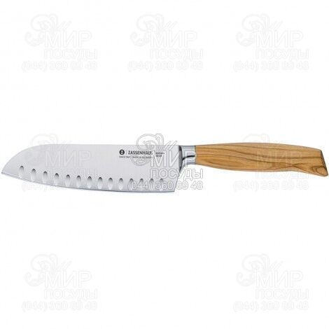 Нож Edition Olive от немецкой компании Zassenhaus изготовлен из нержавеющей стали в сочетании с отборной древесиной старых оливковых деревьев, благодаря чему вдохновляет профессиональных поваров и любителей. Каждый кусок оливкового дерева уникален и уникален благодаря яркой текстуре. Из-за возраста древесины рукоять очень твердая и прочная, как и лезвие, закаленное льдом, с твердостью 56 HR.