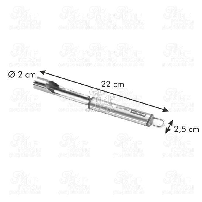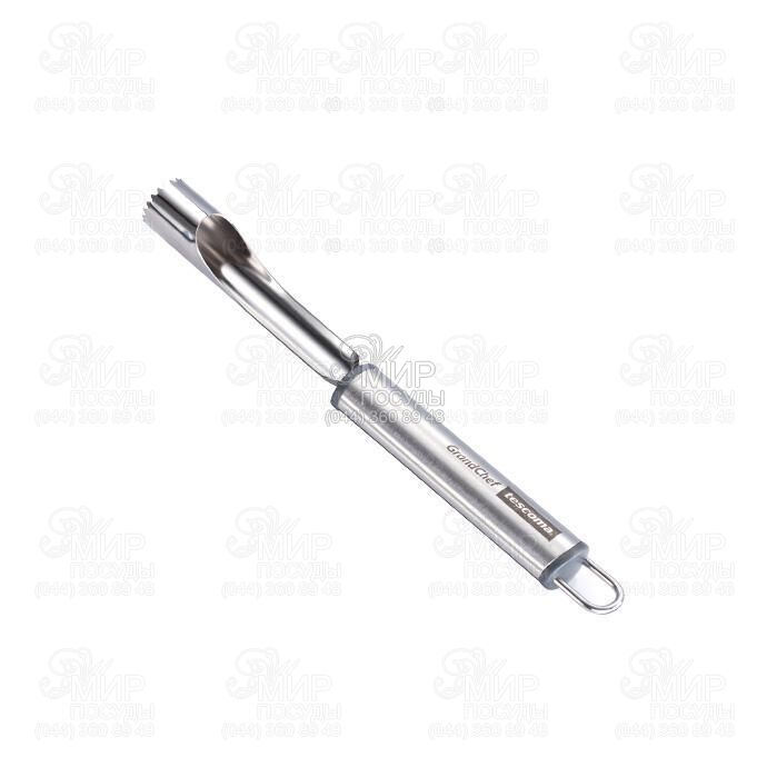 Нож для удаления сердцевины яблока GrandCHEF от чешского производителя Tescoma изготовлен из нержавеющей стали. На конце ручки имеется специальная петля, поэтому нож можно хранить в вертикальном положении.