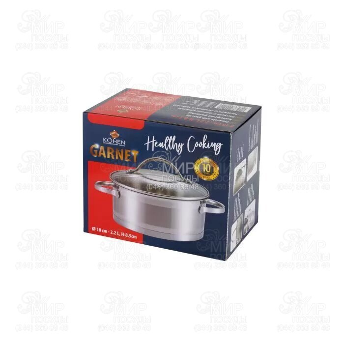 Кастрюля Garnet от немецкого бренда Kohen изготовлена из нержавеющей стали. Kohen является сторонниками здоровой и вкусной еды, приготовленной в качественной посуде. Под этим брендом можно найти все необходимое для приготовления любимых блюд без вреда для здоровья.