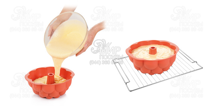 Форма для выпечки от чешского производителя Tescoma отлично подходит для приготовления торта с низкой вязкостью. Выпечка не пригорает, пропекается быстро и равномерно, бисквитный пирог можно легко вывернуть, когда он будет готов.