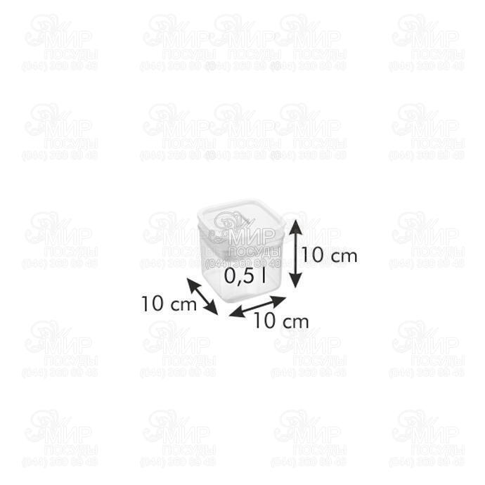 Характеристика: длина 10 см, ширина 10 см, высота 10 см, объем 500 мл