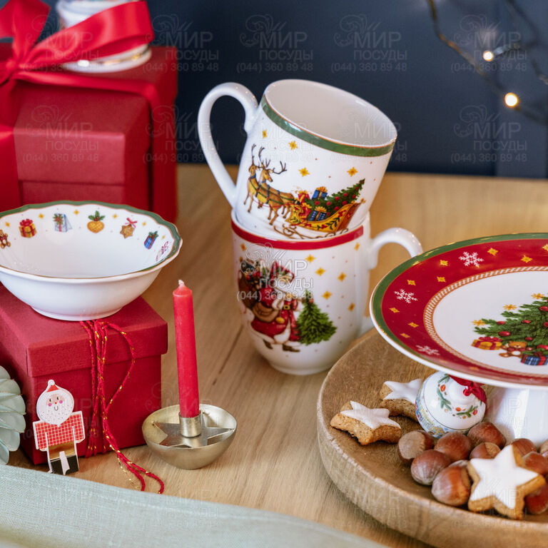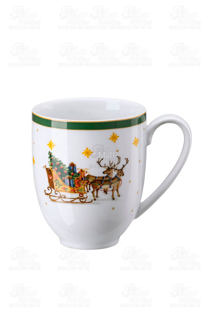 Кружка Happy Wintertime от немецкого производителя Hutschenreuther изготовлена из фарфора. Красный и зеленый по-прежнему считаются классическими рождественскими цветами. Если сочетать традиционные рождественские цвета с лаконичным дизайном, можно создать интерьер, вдохновленный скандинавским колоритом. Посуда, оформленная в праздничных оттенках с яркими принтами, напоминает о рождественской сказке и новогодних чудесах. Фарфор нежного кремового цвета с изображением Санты - лимитированная коллекция, которая поможет создать уютную атмосферу в канун Нового года.