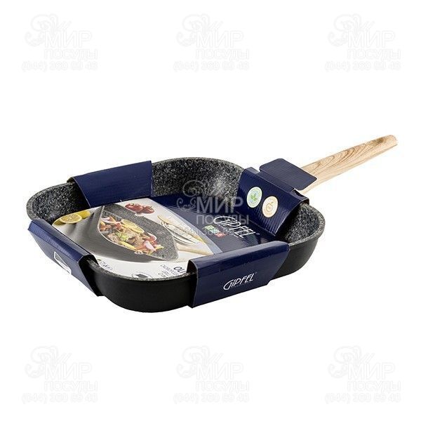 Сковорода-гриль от Gipfel выполнена из литого алюминия. Материал очень быстро нагревается, поэтому процесс приготовления пищи не займет у вас много времени. Продукты прогреваются равномерно, не теряя в процессе термообработки естественного аромата, вкуса и полезных свойств. Гранитное антипригарное покрытие PFLUON позволяет использовать небольшое количество масла для жарки, а также значительно облегчает уход за посудой. Бакелитовая ручка не нагревается, надежно защищая руки от возможных ожогов. Отдельного внимания заслуживает и дизайн сковороды.