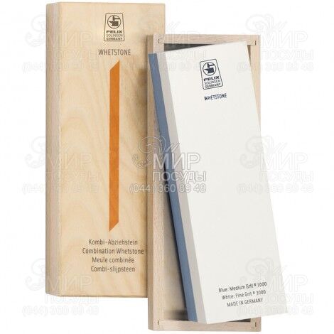 Двусторонний точильный камень на подставке от немецкого производителя Felix/Zepter предназначен для непосредственной заточки ножа. Начните заточку с камня зернистостью 1000, затем воспользуйтесь камнем с зернистостью 3000. Подставка предотвращает скольжение камня по поверхности.