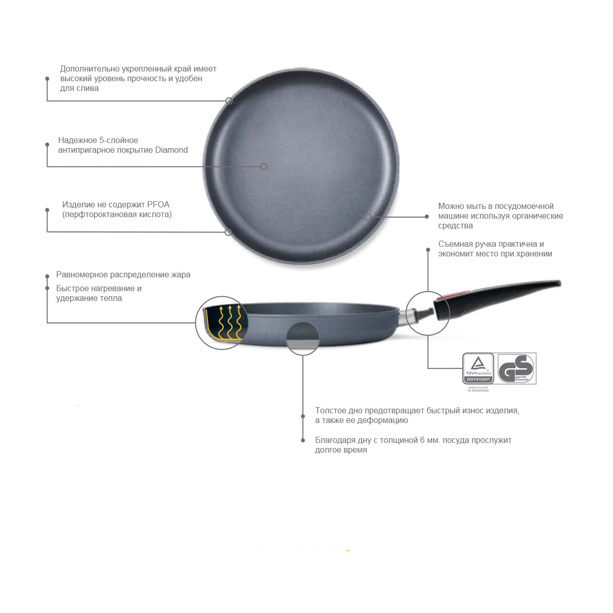Diamond Titan Best – новейшее сверхпрочное 5-слойное антипригарное покрытие с добавлением алмазной крошки.