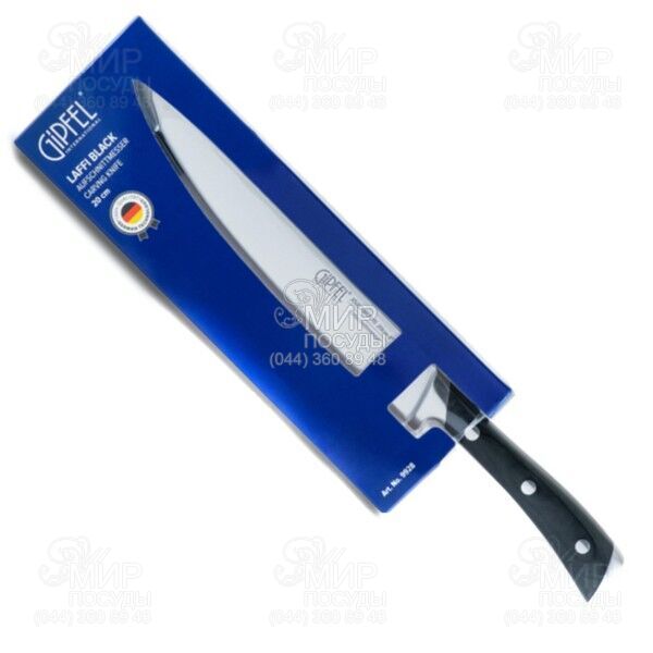 Ножи серии Laffi Black от немецкого производителя Gipfel отличаются от других, прежде всего, материалом лезвия, которым является сталь марки X50CrMoV15. Она является отличным сочетанием остроты, гибкости и прочности, то есть именно тем, чем должен выделяться идеальный кухонный нож. Добавьте к этому удобную рукоятку, не ускользающую во время резки, и вы получите настоящие профессиональные ножи, которыми теперь можно укомплектовать и вашу кухню.