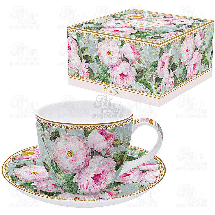 Чашка для завтрака с блюдцем Roses in Bloom 400мл R1454#ROBL