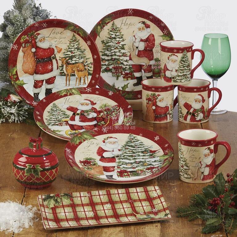 Обеденные и салатные тарелки, пиалы и кружки для чая похожи на сказочные иллюстрации из коллекционных детских изданий, празднично сверкающих на свете благодаря запатентованной глазури, нанесенной сверху на каждое изделие. На каждом из предметов сервиза есть новогодние пожелания. Эти фразы напоминают о ценности любви, мира, радости и надежды во время праздников, и они придают особую атмосферу и настроение праздничному столу: