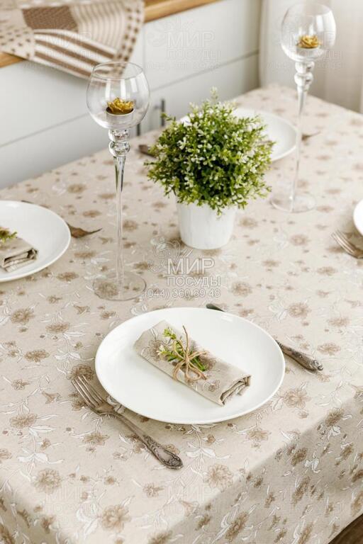 Мир посуды - Домашний интерьер - Домашний текстиль - Скатерти - Скатерть Хозяйка Цветы беж 136х220см 4823093450967