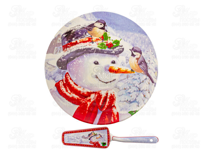 Мир посуды - Столовая посуда - Тортовницы - Тортовницы без ножки - Тортовница с лопаткой Рождественская коллекция 27см 924-837