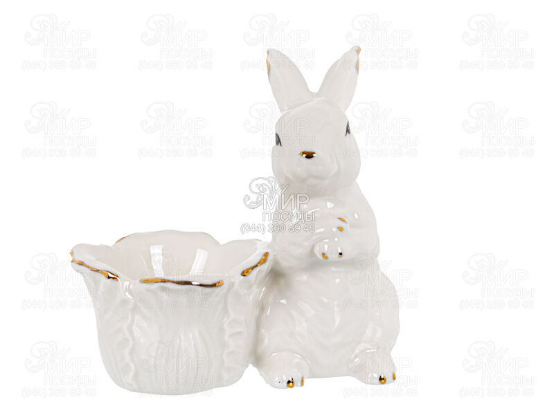 Мир посуды - Столовая посуда - Пашотницы - Подставка под яйцо Кролик белый с капустой 10см 149-478