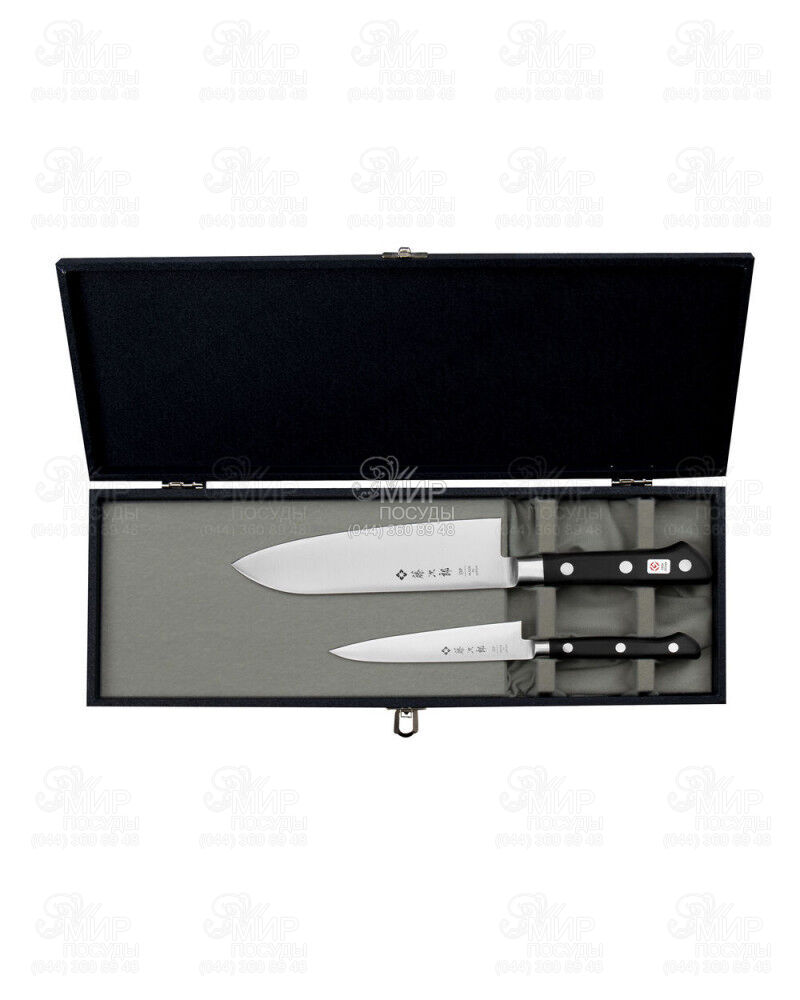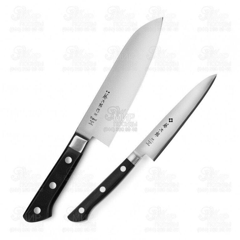 Набор ножей DP3 от Tojiro – это поварские инструменты, подходящий для решения множества кухонных задач. Клинки выполнены из ламината 3-х слоев нержавеющей стали: VG-10 по центру (твердостью около 60 HRC) и более мягкой по бокам, с двухсторонней заточкой и финишной сатиновой полировкой. Исключительно тонкое сведение и бритвенная острота режущей кромки сможет исполнить любую прихоть владельца с поразительной быстротой. Ламинированные рукояти, изготовленные из черной армированной древесины, рассчитаны на повышенные нагрузки, долгую службу и противодействие бактериям, для которых кухня – это обычная среда обитания. Довольно тонкая, но удобная форма, обеспечивает надежный хват и полное послушание ножа даже в мокрых и жирных ладонях.