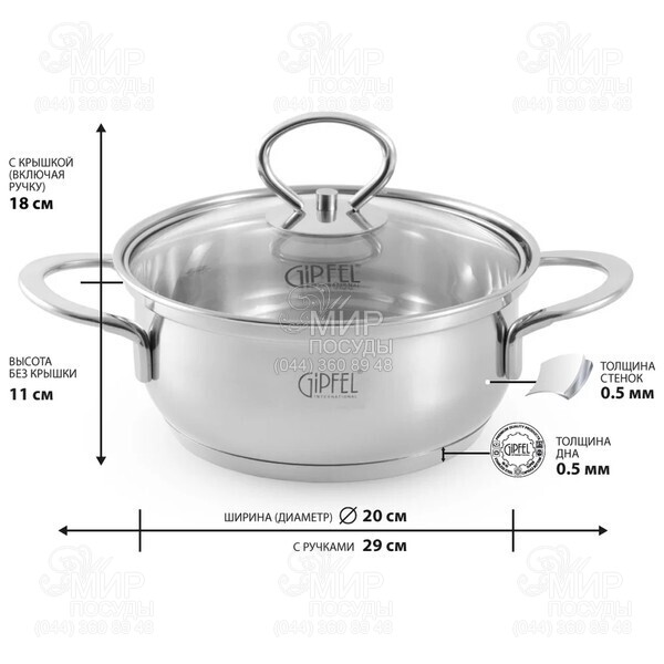 Кастрюля со стеклянной крышкой Sofia от Gipfel изготовлена из высококачественной нержавеющей стали, которая не окисляется, при длительном использовании сохраняет свою прочность. Дно кастрюли равномерно распределяет тепло по всей поверхности. Тщательно подогнанная крышка великолепно сохраняет тепло и вы можете наблюдать за процессом приготовления не поднимая ее. Перед первым использованием изделия из нержавеющей стали, вымойте его в горячей мыльной воде с добавлением уксуса. Сполосните и вытрите насухо.