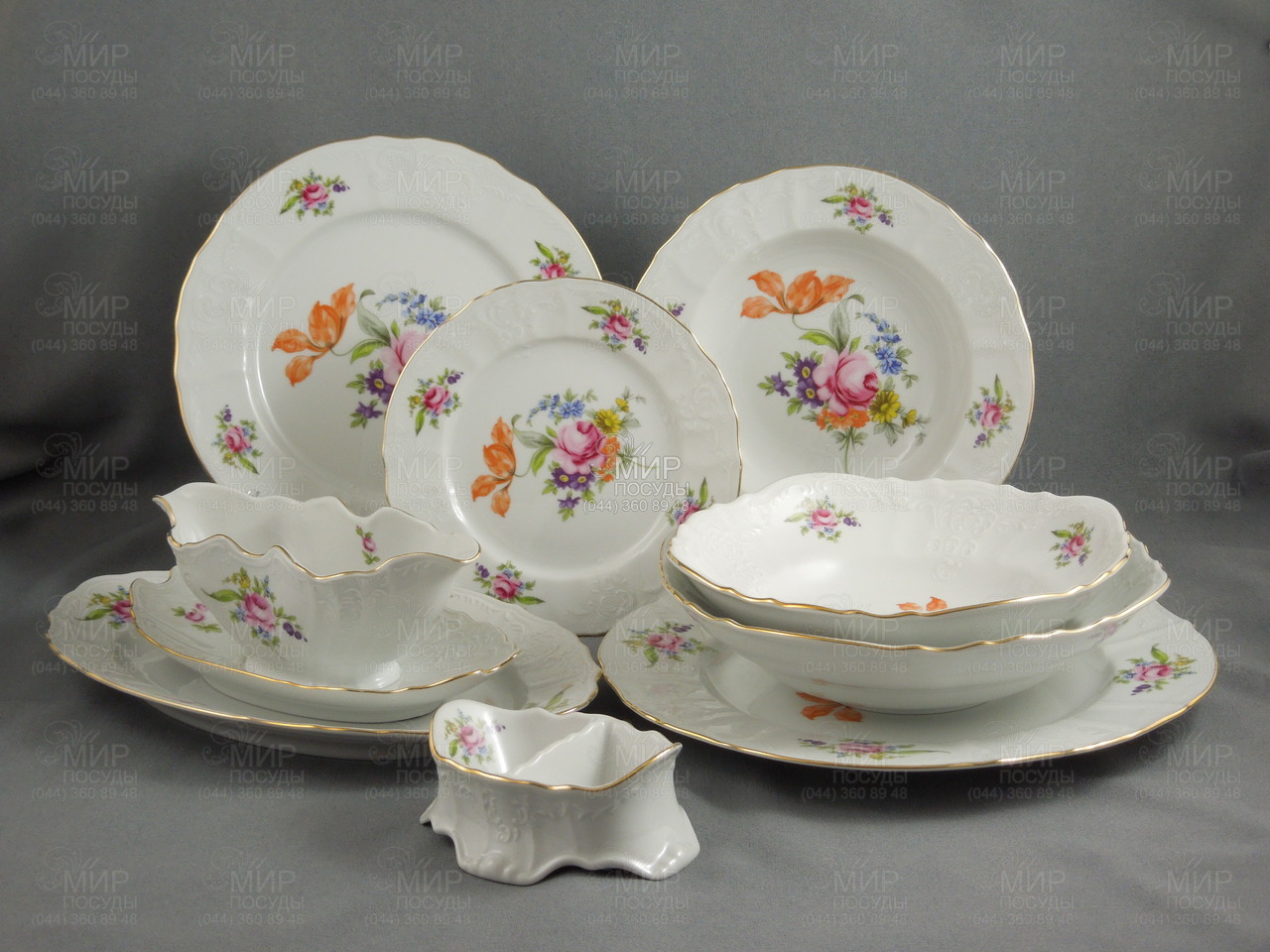 Мир посуды - Столовая посуда - Столовые сервизы - Столовый сервиз без супницы Bernadotte Мейсенский букет 6/24