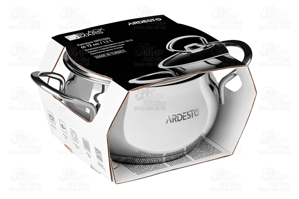 Кастрюля Black Mars от Ardesto изготовлена из нержавеющей стали.