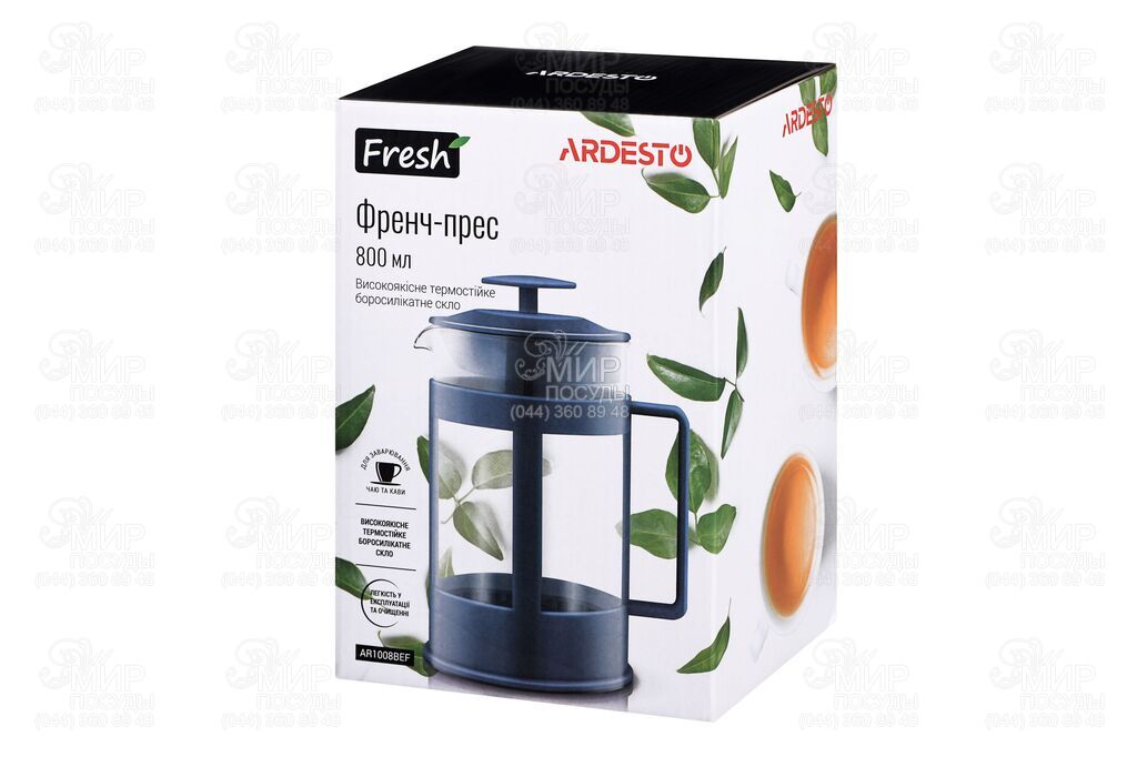 Френч-пресс Fresh от Ardesto изготовлен из боросиликатного стекла и пластика.