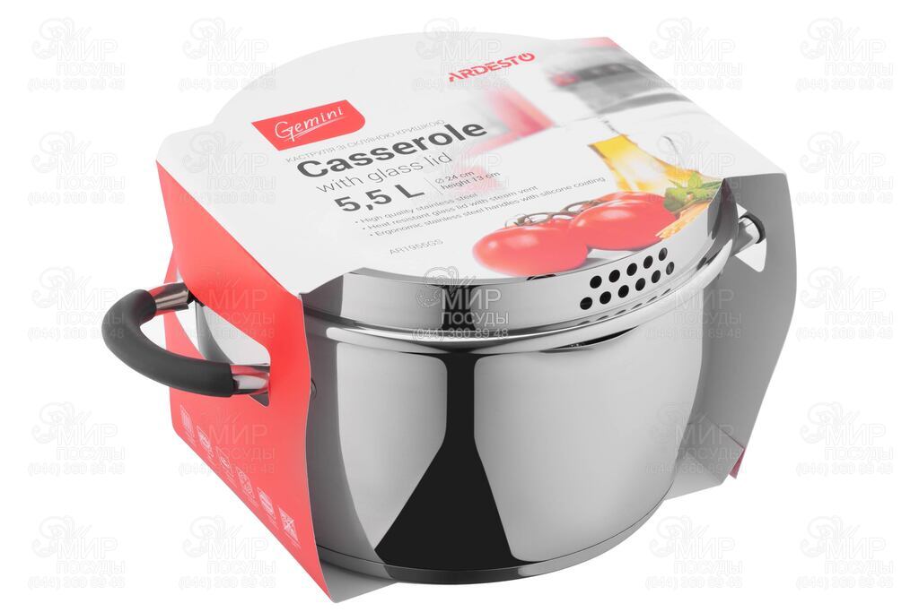 Кастрюля Gemini Livorno от Ardesto изготовлена из нержавеющей стали. Для слива воды в конструкции кастрюли предусмотрены носик и специальные отверстия в крышке.