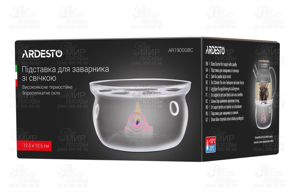 Стеклянная подставка для подогрева от Ardesto. Кроме изысканного внешнего вида, посуда из боросиликатного стекла очень практична и гигиенична.