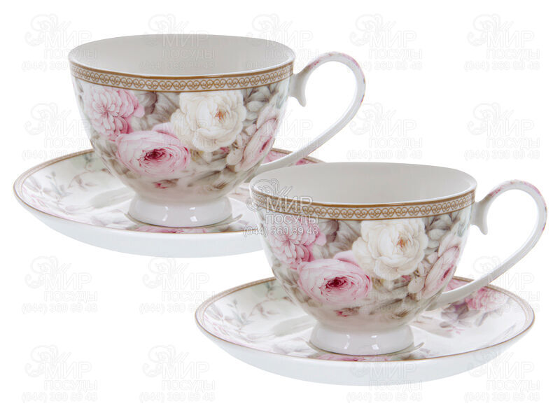 Мир посуды - Столовая посуда - Чашки - Наборы чайных чашек - Набор чашек для чая с блюдцами Английская роза 250мл 924-850