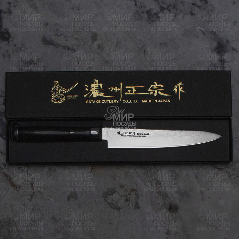 Японский нож Damascus от Satake изготовлен из дамасской стали и черной рукояткой в особом дизайнерском исполнении. Технически ножи выполнены безупречно, на основе старинных японских традиций изготовления мечей, с усовершенствованными тенденциями сегодняшнего дня. Безопасные и легкие в работе ножи от Satake долгое время держат заточку, удобны в работе и покорили сердца тысяч настоящих профессионалов и любителей кулинарного искусства.