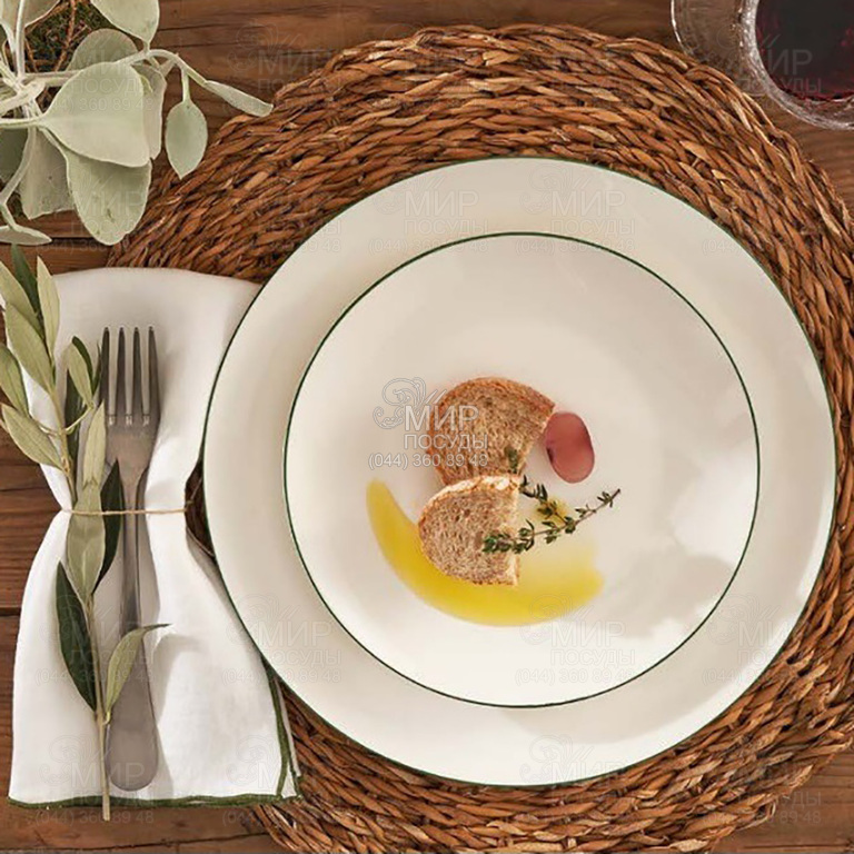 Коллекция Dintorno от итальянского производителя La Porcellana Bianca изготовлена из фарфора самого высокого качества. Чистая белизна фарфора прекрасно сочетается с изящным контуром тосканского зеленого цвета, окружающим изделие, подчеркивая его. Dintorno – посуда вне времени, подходящая для любого праздничного случая.
