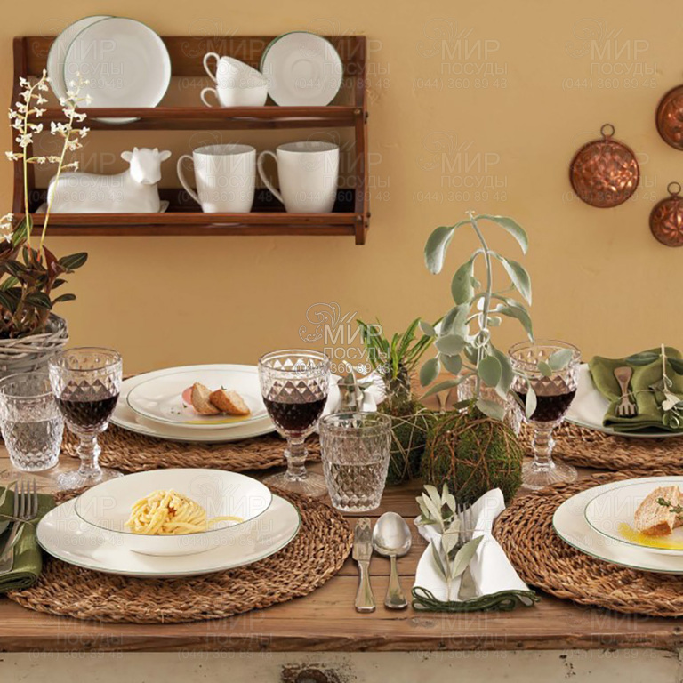 Коллекция Dintorno от итальянского производителя La Porcellana Bianca изготовлена из фарфора самого высокого качества. Чистая белизна фарфора прекрасно сочетается с изящным контуром тосканского зеленого цвета, окружающим изделие, подчеркивая его. Dintorno – посуда вне времени, подходящая для любого праздничного случая.