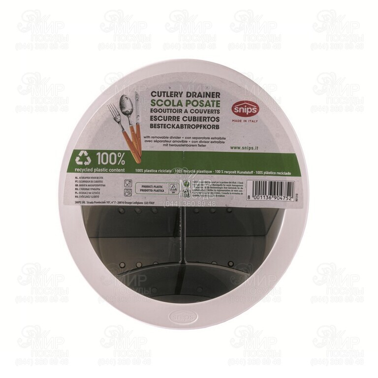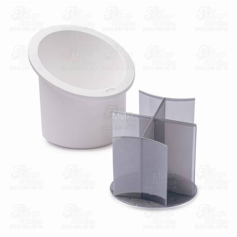 Подставка для столовых приборов Snips обладает привлекательным дизайном. Цилиндрическая емкость укомплектована съемной перегородкой на 6 секций разной высоты, что обеспечивает практическую организацию разных типов столовых приборов. Перегородка имеет специальные отверстия, предотвращающие задержание влаги, предотвратив образование плесени или неприятных запахов.