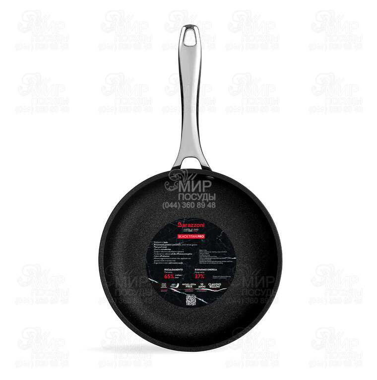 Сковорода Black Titan Pro от итальянского производителя Barazzoni изготовлена из алюминия, отлично подходит для ежедневной эксплуатации. Титановое антипригарное покрытие обеспечивает высокий комфорт при использовании. Оснащена дизайнерской ручкой из нержавеющей стали, которая имеет эргономичную форму и удобно лежит в руке.