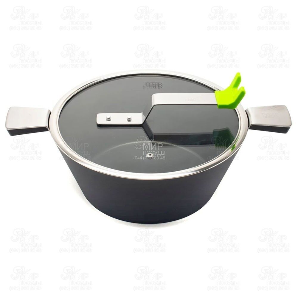Посуда серии Supreme от Gipfel выполнена из кованого алюминия, экономичного аналога чугуна, обладающего высокими теплопроводными свойствами. Пригорание пищи до дна и стенок при приготовлении практически исключено благодаря надежному антипригарному покрытию Whitford Xylan, которое прослужит исключительно долго, если отказаться от использования металлических царапающих поверхность лопаток в пользу силиконовых и деревянных. Модель оснащена стеклянной крышкой, в которой есть специальная подставка для половника.
