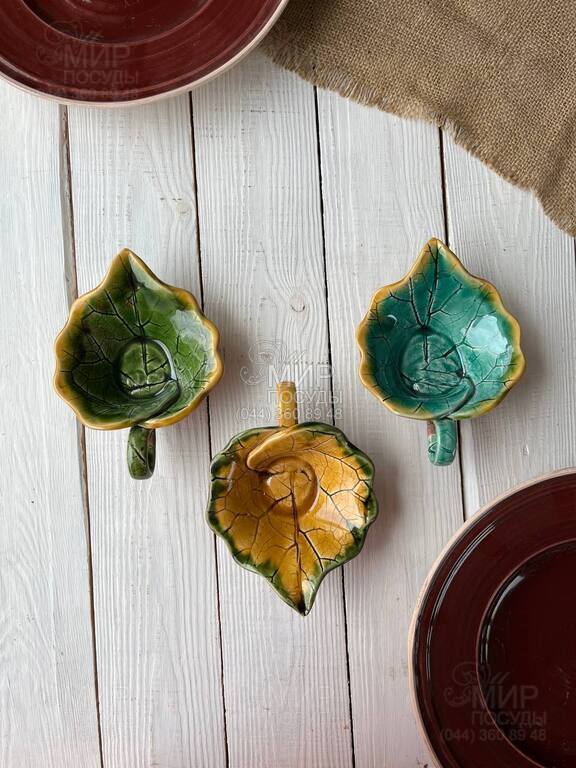Соусник с ручкой Флора Лопух Зеленый с ободком 100мл 1201030813