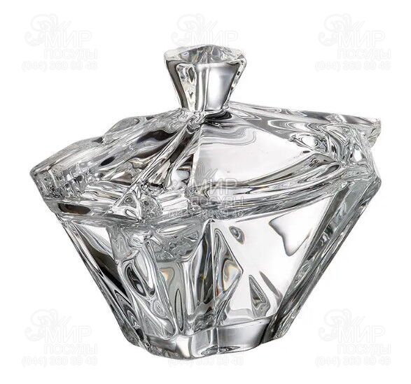 Конфетница с крышкой Enigma от чешского производителя Crystalite изготовлена из бессвинцового хрусталя. Обладает исключительной прозрачностью, светопреломлением и блеском в сочетании с лёгкостью, прочностью и возможностью мытья в посудомоечной машине без последствий.