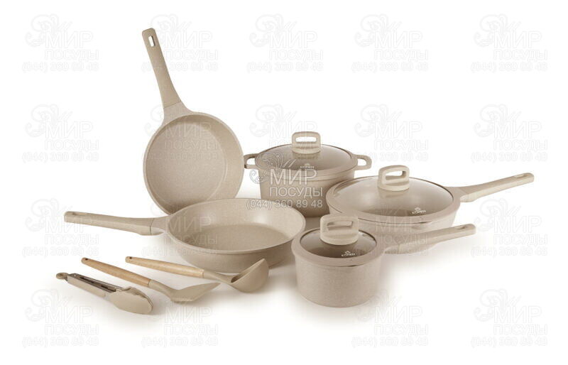 Эксклюзивная серия посуды Grand Latte от Kohen из литого алюминия в нежных светлых тонах будет идеально дополнять интерьер вашей кухни. Один набор полностью обеспечит все ваши потребности в приготовлении.