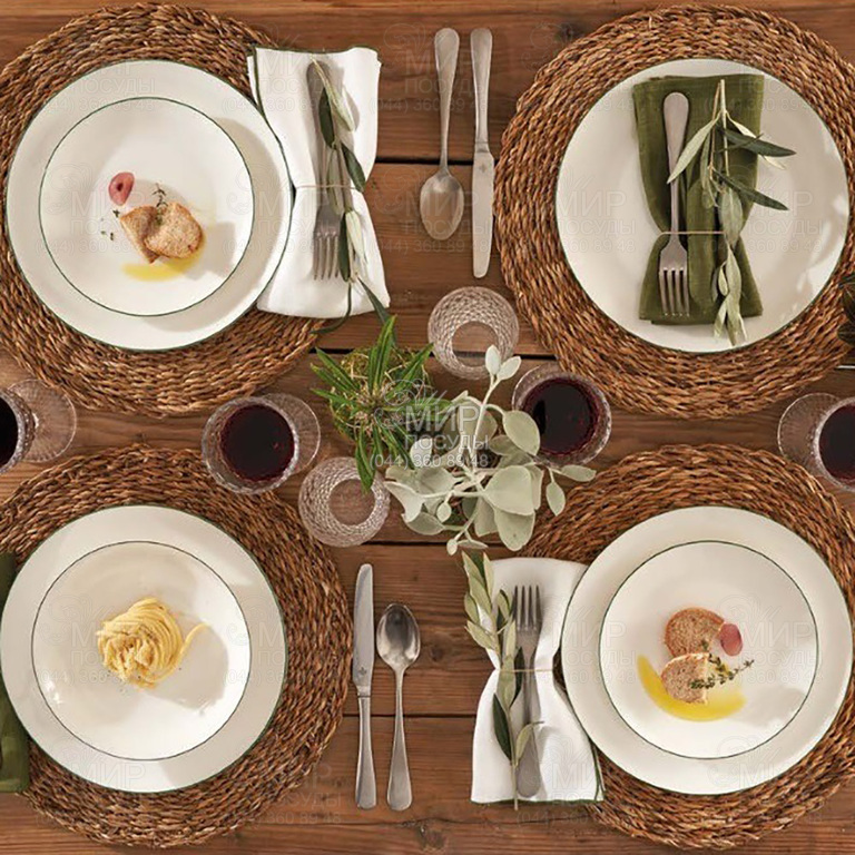 Коллекция Dintorno от итальянского производителя La Porcellana Bianca изготовлена из фарфора самого высокого качества. Чистая белизна фарфора прекрасно сочетается с изящным контуром тосканского зеленого цвета, окружающим изделие, подчеркивая его. Dintorno – посуда вне времени, подходящая для любого праздничного случая.