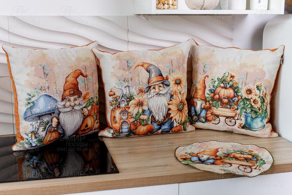 Подушка декоративная Тыквенные гномы с домиком 45х45см...