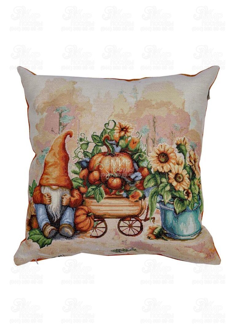 Подушка декоративная Тыквенные гномы с тележкой 45х45см...