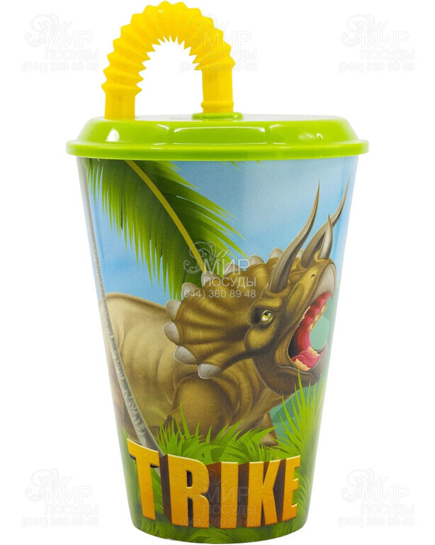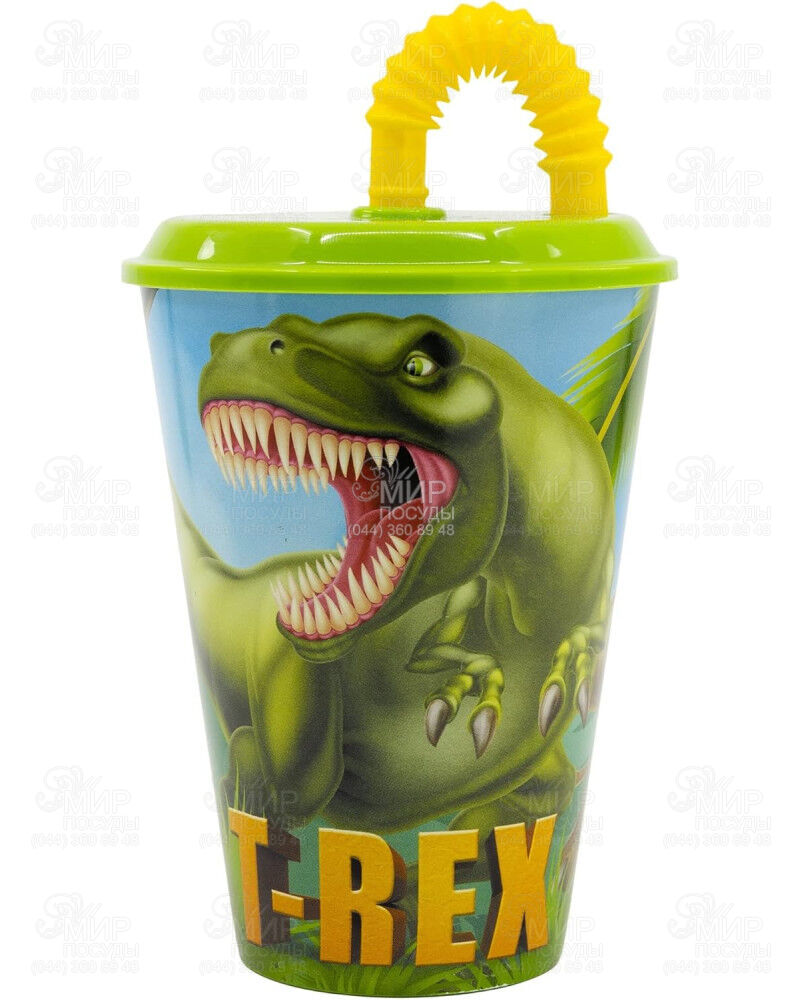 Мир посуды - Столовая посуда - Детские чашки - Стакан детский с крышкой и трубочкой Dinosaur 430мл 26230