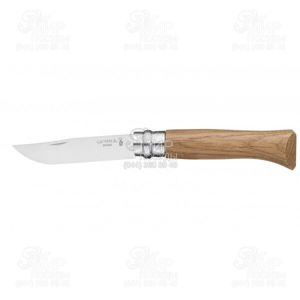 Клинок ножа Opinel Tradition Luxe изготовлен из нержавеющей стали шведского производства, которая отлично держит заводскую заточку. Острота лезвия может быть доведена до идеального состояния с помощью стандартного точильного камня. Рукоятка у этого инструмента выполнена из древесины дуба, которая отлично поддается полировке.