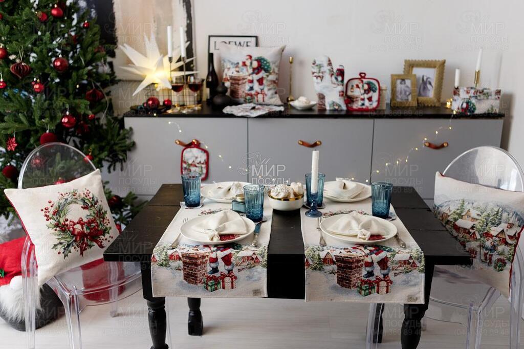 Скатерть с велюром Снежная зима 135х350см 4823093464995