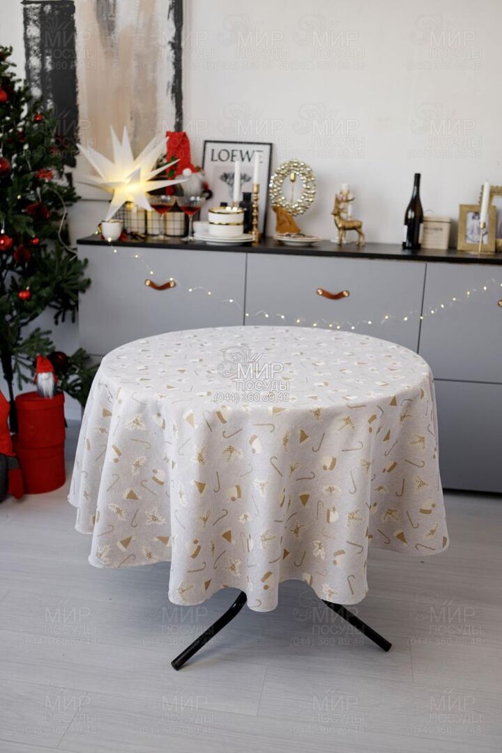 Скатерть с люрексом Шапочки на бежевом 180см 4823093465893