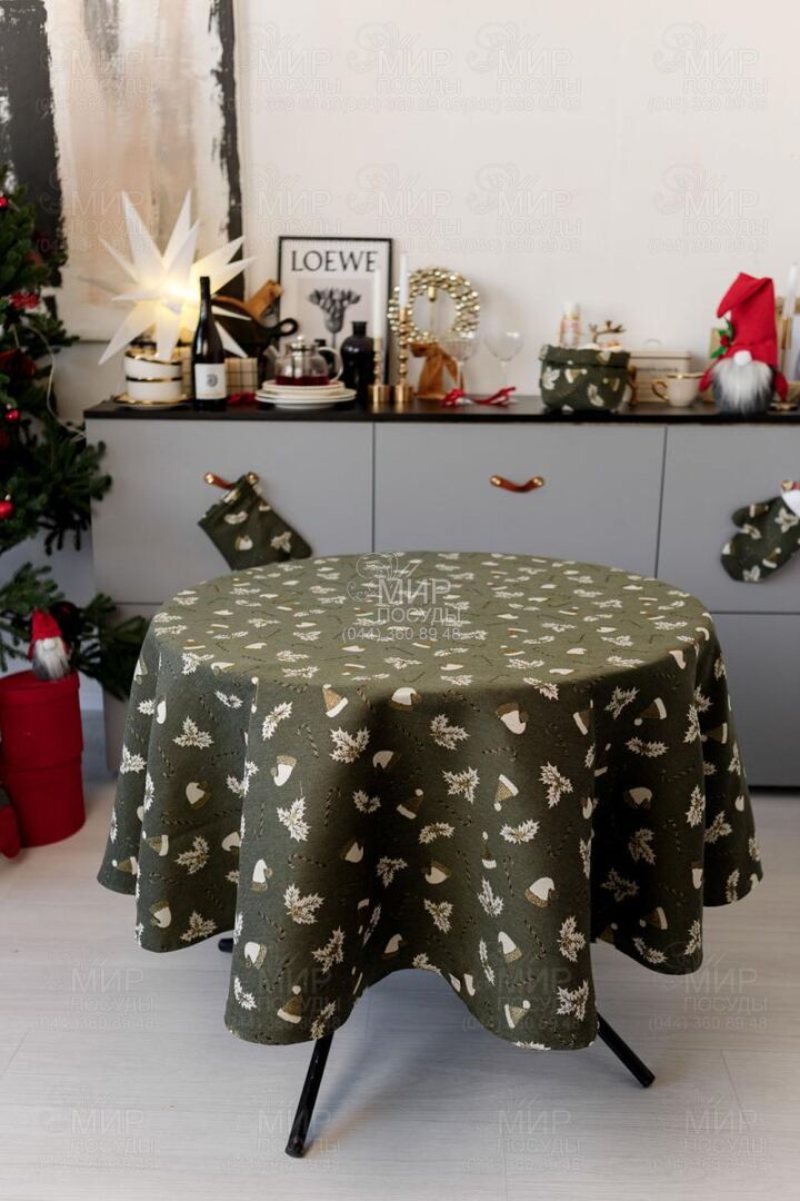 Мир посуды - Домашний интерьер - Домашний текстиль - Скатерти - Скатерть с люрексом Шапочки на зеленом 136см 4823093465916